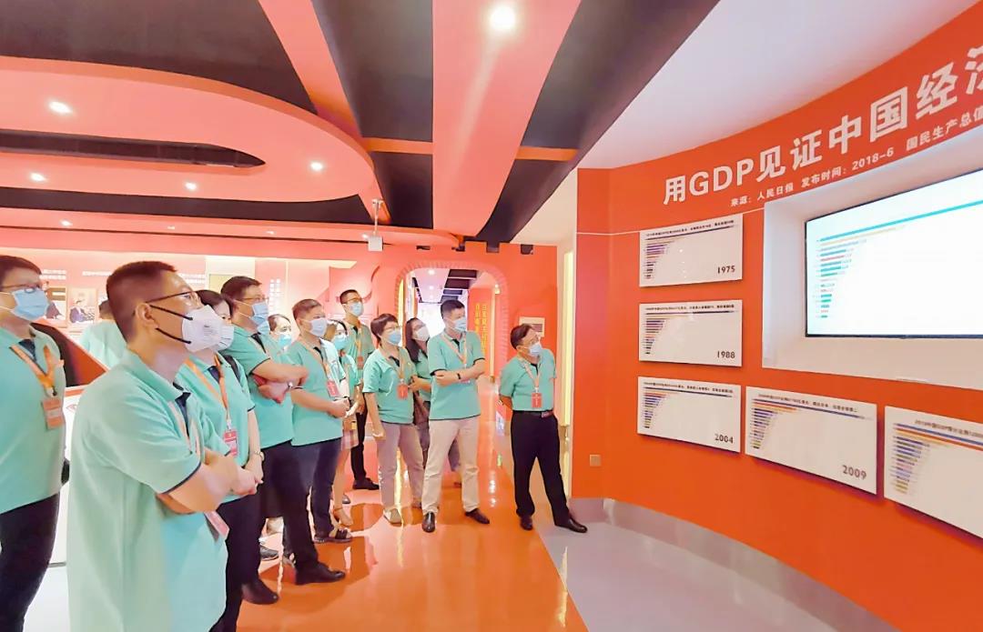 在圓方集團(tuán)初心廳,公司全員齊唱國歌、重溫入黨誓詞,堅(jiān)定入黨使命、奮斗初心。在講解員的帶領(lǐng)下,先后參觀了圓方黨建文化長廊、創(chuàng)業(yè)紀(jì)念館、圓方之路、硬核河南、“抗疫情 戰(zhàn)新冠”展教館等,系統(tǒng)了解了圓方集團(tuán)黨建工作的豐碩成果。一張張圖片、一段段文字、一件件實(shí)物,生動闡釋了“我是共產(chǎn)黨員,平時看出來、困難站出來、危機(jī)豁出來”的質(zhì)樸信念。