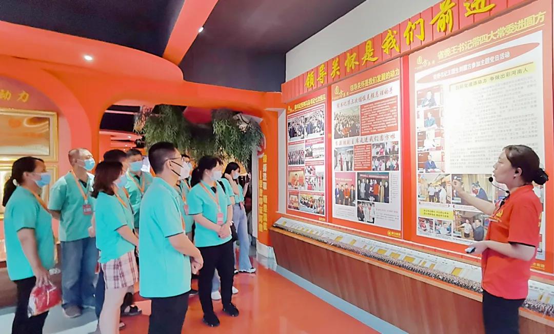 為深入學(xué)習(xí)貫徹習(xí)近平總書記給鄭州圓方集團(tuán)全體職工的重要回信精神,了解和借鑒優(yōu)秀非公有制企業(yè)黨建工作經(jīng)驗(yàn),8月3日下午,公司執(zhí)行董事徐希萍、黨支部書記董高峰帶領(lǐng)近20名黨員及團(tuán)員代表走進(jìn)鄭州圓方集團(tuán)參觀學(xué)習(xí)。