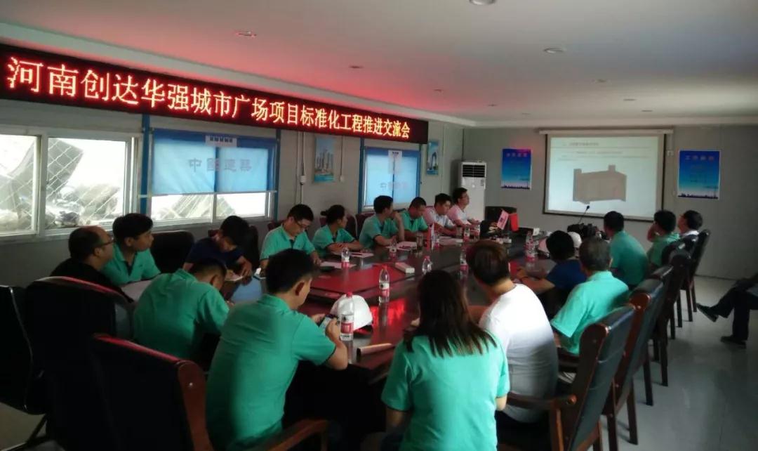 為落實河南省建設(shè)工程標(biāo)準(zhǔn)化管理工作推進交流會會議精神,2018年7月21日 ,河南創(chuàng)達建設(shè)工程管理有限公司在華強城市廣場項目召開標(biāo)椎化工程推進交流會。公司董事長楊明宇出席會議并做重要講話,中建八局項目經(jīng)理樊曉波對工程質(zhì)量標(biāo)準(zhǔn)化管理做了介紹,參會項目總監(jiān)及與會人員對標(biāo)椎化工程推進展開深入交流。