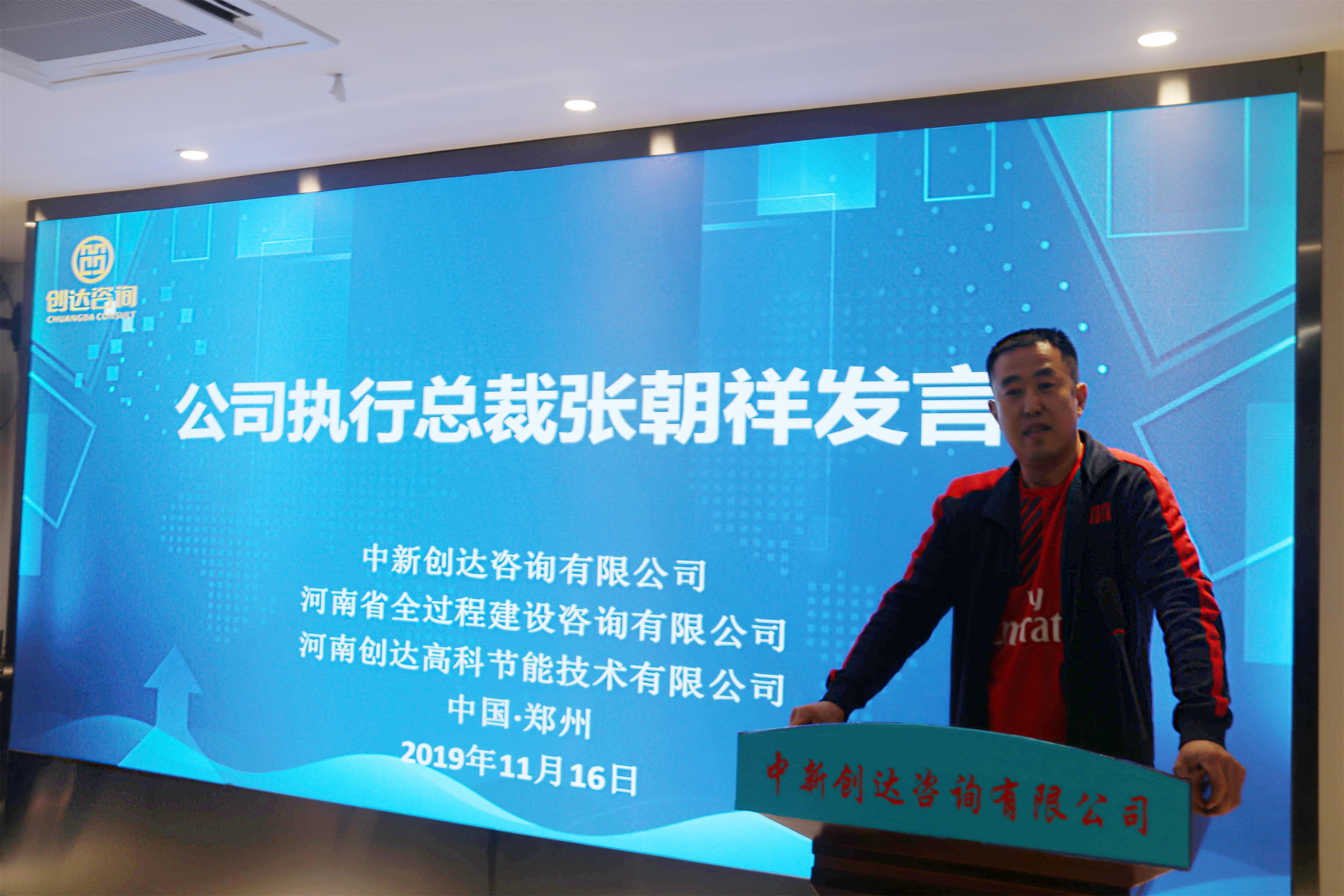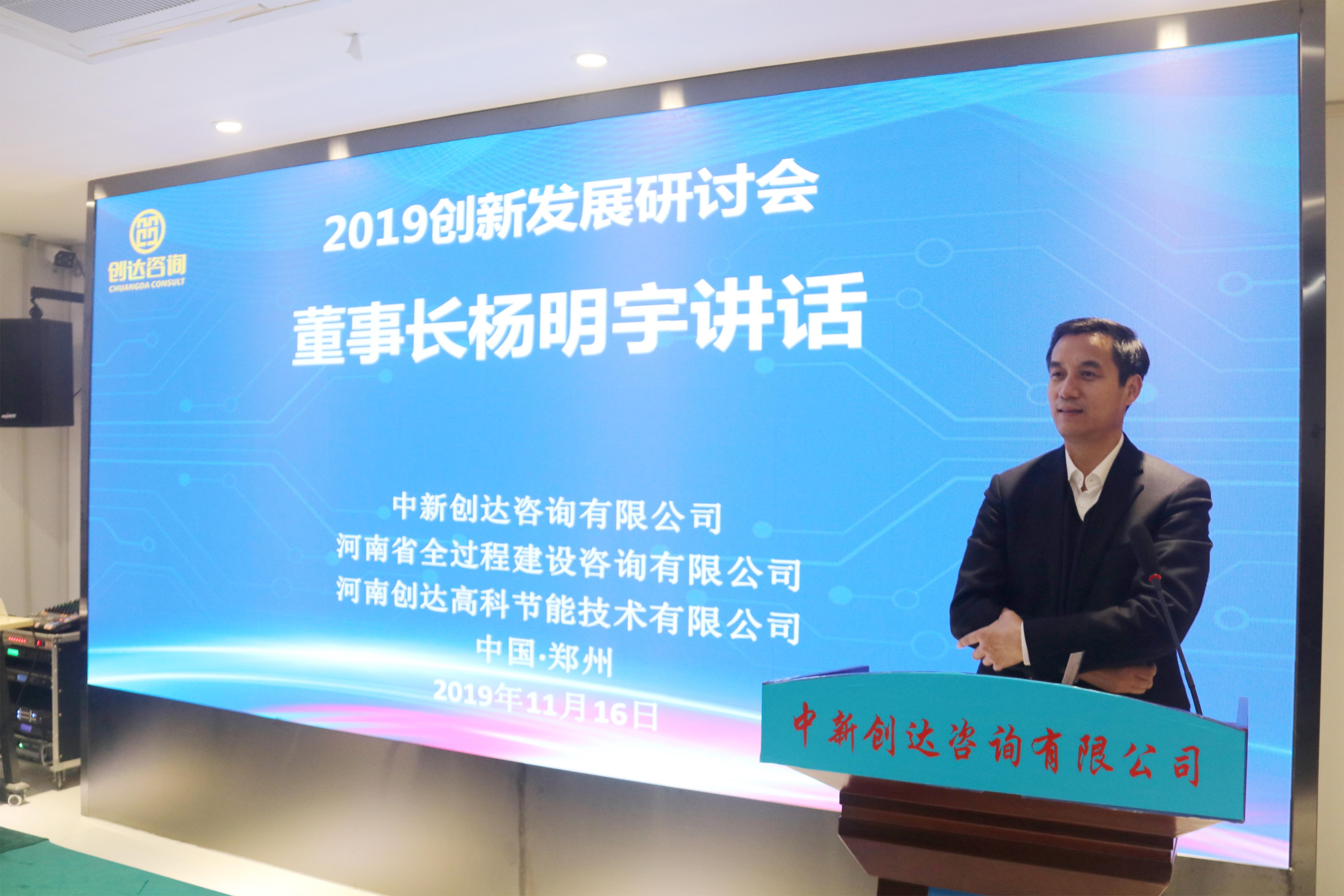 2019年11月16日,中新創達咨詢有限公司在總部召開2019創新發展研討會。從行業發展大勢與企業集團化戰略發展出發,圍繞市場拓展、品牌化建設、聯盟建設、全過程業務開展等進行深入探討。公司董事長楊明宇、執行總裁張朝祥、各中心負責人及河南省內分支機構部分代表參加會議。會議由市場開發中心總經理葛群主持。
