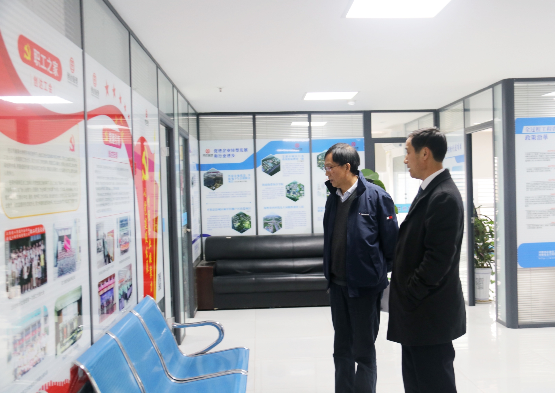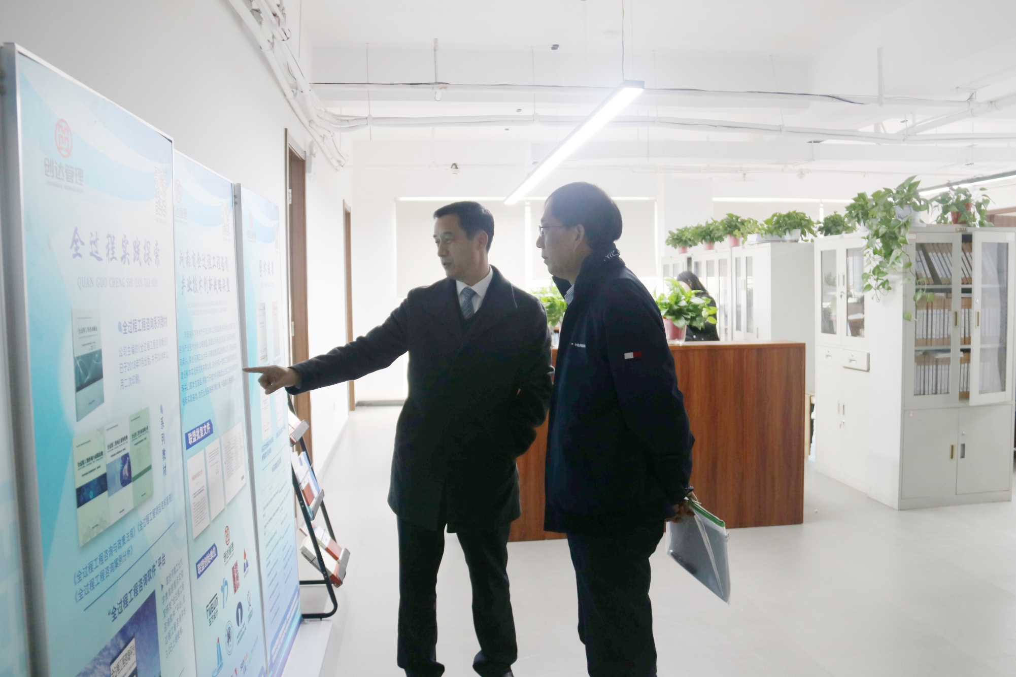 會前,董事長楊明宇帶領屠名瑚秘書長參觀了創達總部辦公環境。