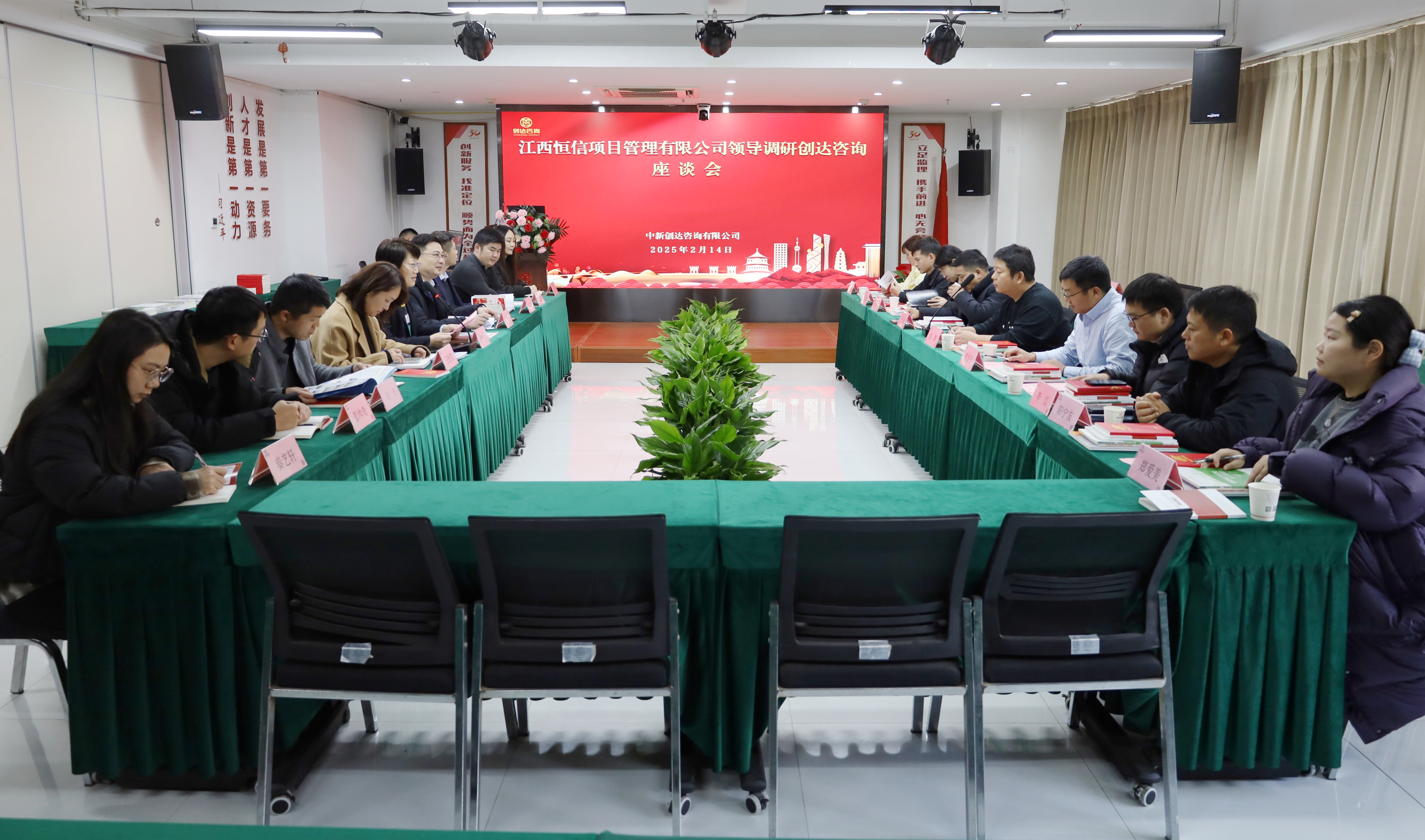 2025年2月14日下午,江西恒信集團執行董事、江西恒信項目管理有限公司總經理張翔帶領管理團隊蒞臨創達咨詢參訪交流。公司執行董事徐希萍、副總裁丁東、副總工王恒瑩、集團戰略群總裁王偉等領導出席接待并召開座談會。雙方就企業市場開拓、業務經營、技術管理提升、行業發展痛點、全過程咨詢實踐等議題展開深入交流。
