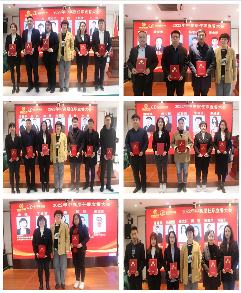執行董事徐希萍為新任職人員頒發聘書。在徐總的監誓下,新任職人員高舉右拳進行集體宣誓,錚錚誓言表達了對創達事業努力奮斗的決心,表現了勇于擔當、履職盡責的工作態度。